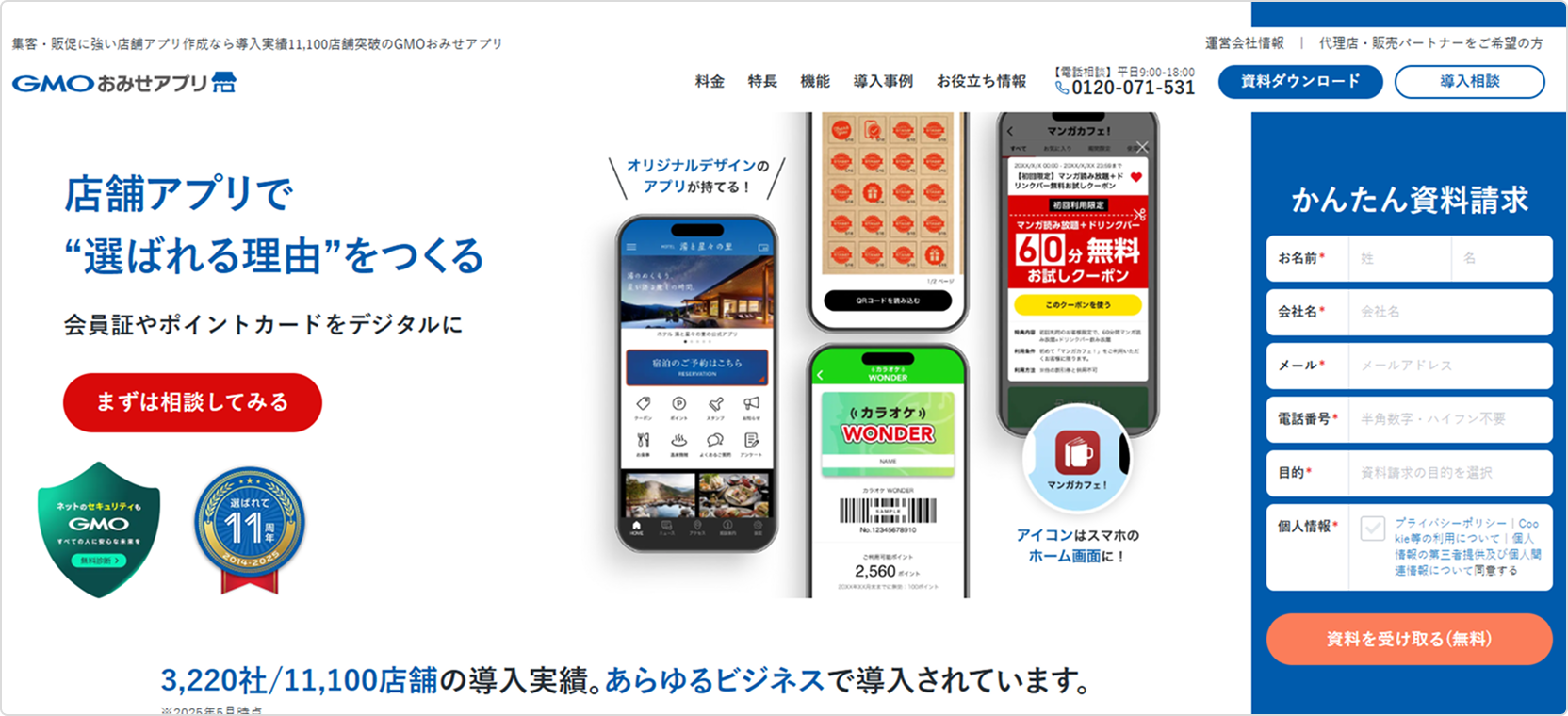 - スタンプカード・クーポン機能でリピーター獲得を支援