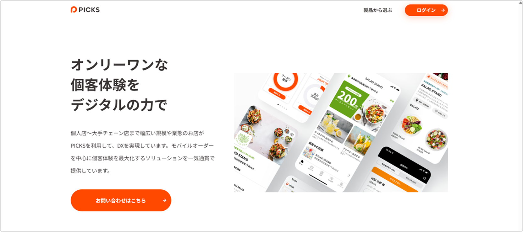 モバイルオーダー/事前決済に強い飲食特化の基盤で、テイクアウトや事前注文を前提にした導線が整っています。クーポンや会員施策を組み合わせることで、来店・再訪のサイクルを作りやすいのが特長です。
