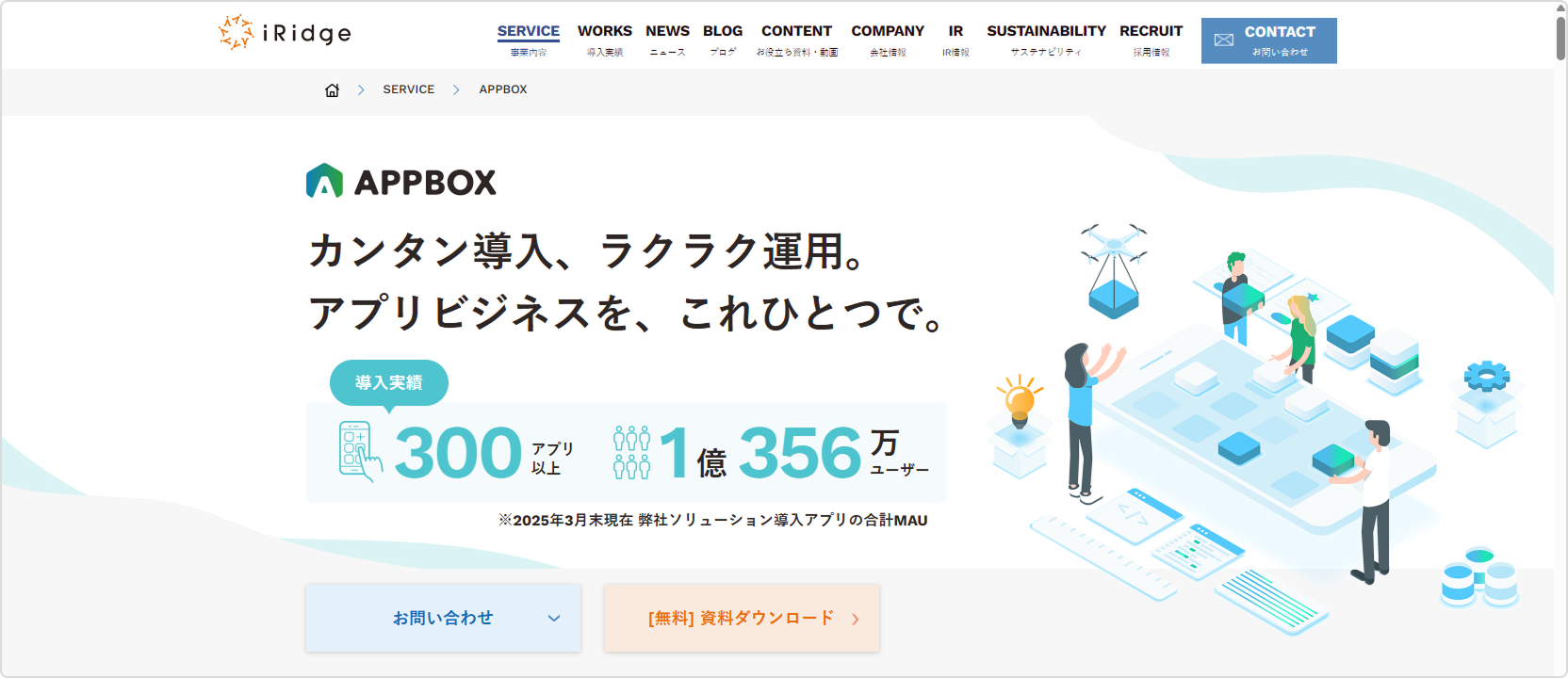 ノーコードでコンテンツ更新やUI調整を素早く反映でき、運用フェーズの改善サイクルを回しやすいです。セグメント/ジオプッシュ・分析・EC/CRM/MA連携が充実しており、施策の効果測定から次の打ち手まで一貫して行えます。大規模導入実績が多く、ガバナンスやサポート体制にも強みがあります。