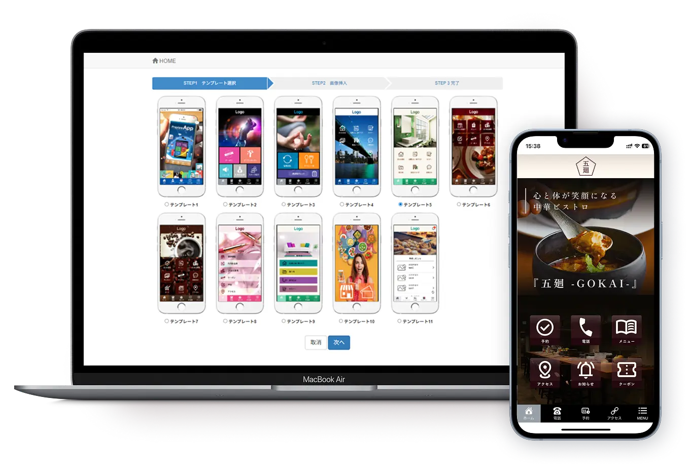 直感的に高品質の自社オリジナルアプリが作成できます。